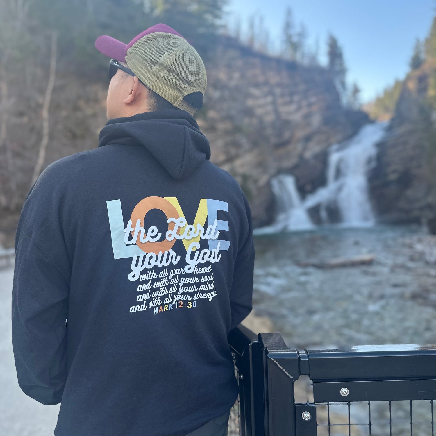 Our full color prints hoodies display the greatest commandment found in Mark 12:30 "Love the Lord your God with all your heart and with all your soul and with all your mind and with all your strength."